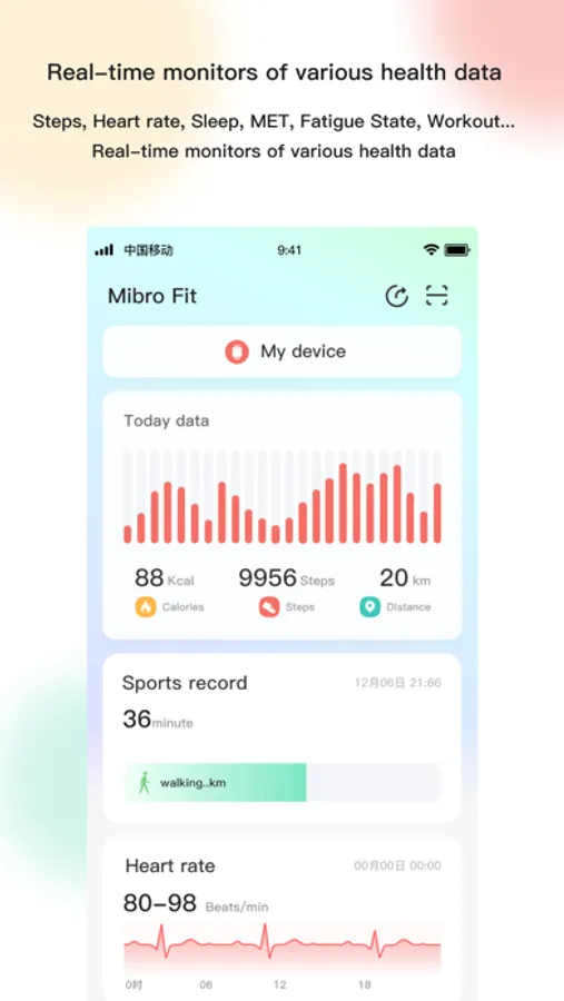 The Mibro Fit application used with Mibro smart watch.It can track your daily status and monitor your fitness.