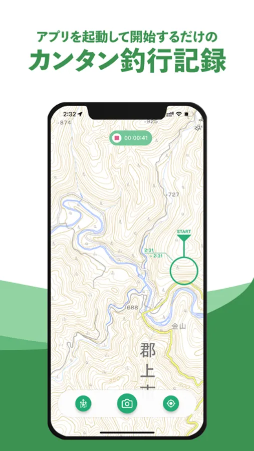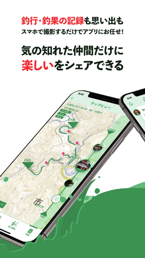 釣れた魚やポイントとなる地点、景色などを撮影するだけで簡単に記録を作成することができます。また、GPSを利用して事前にダウンロードした地図上に写真を配置するので、自動で釣行の軌跡を残していきます。もちろん圏外のエリアでも電波に左右されずに釣行記録を作成可能です。