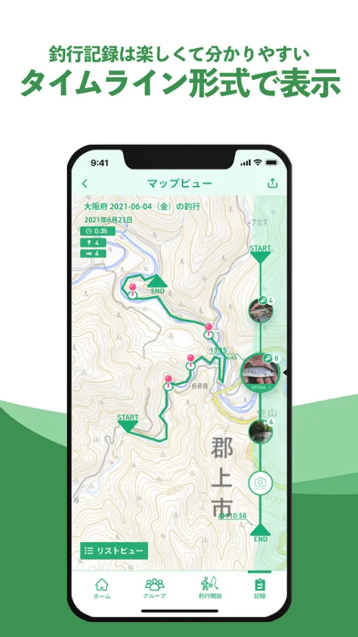 ▼POINT4 釣行記録は後から見て楽しいタイムライン形式▼
