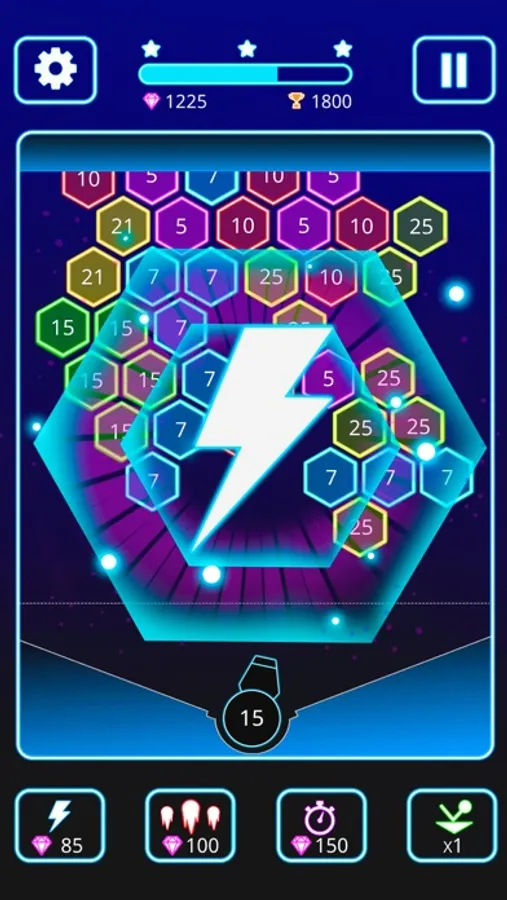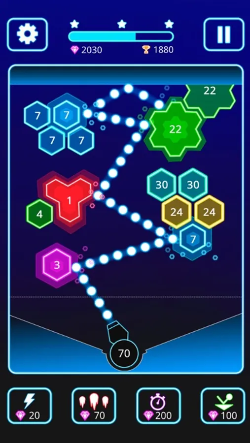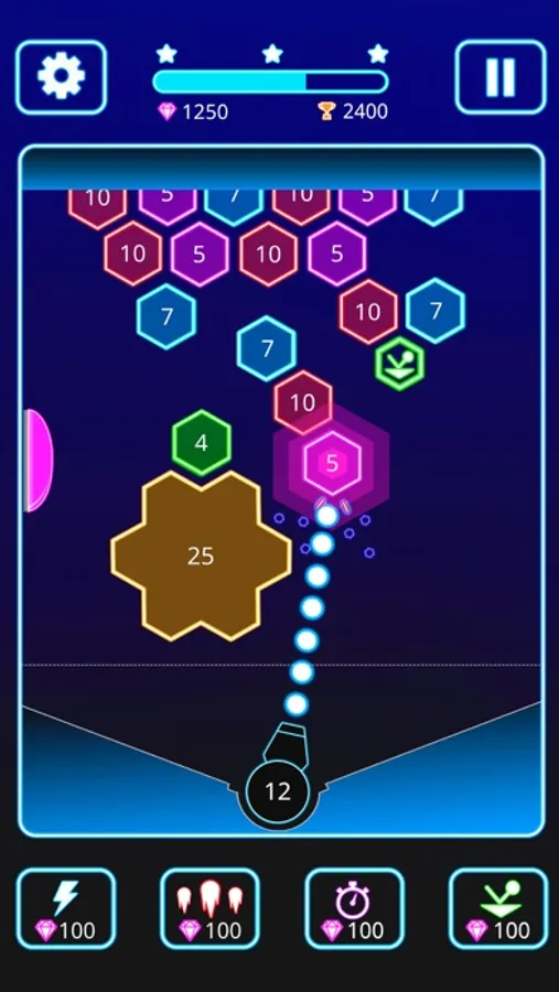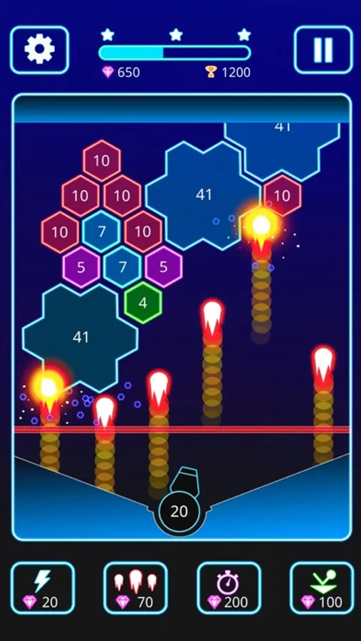 Hexagonals blocks are falling from the top of the screen and you need to shoot at them and blast them before they reach the bottom of the screen.