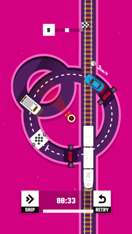 ● Each round contains a different design/shape of the track and has oncoming traffic