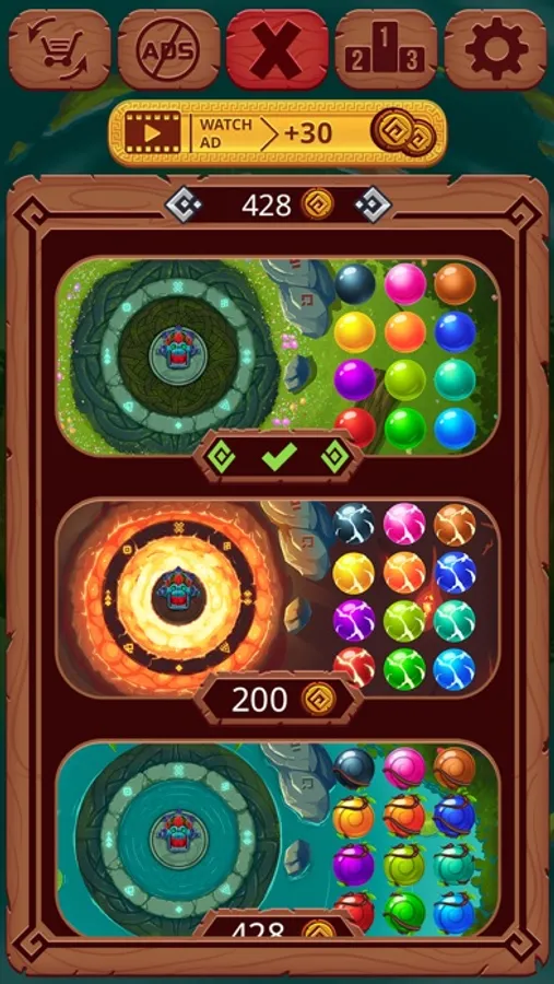A fantastic journey in the mayan pyramids jungle. Shoot and merge the balls !