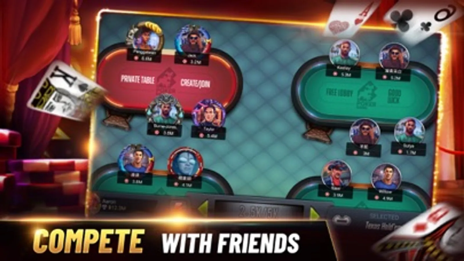 Want to show off your unique personality? Upload a photo to create your own custom avatar, and choose from different themed avatar frames, table skins, and card skins to show off your unique “Poker Bang” style. Let Poker become an art!