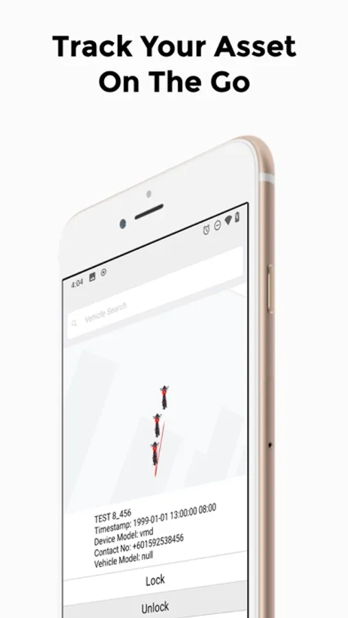 Vehicle asset tracking app with lock/unlock and push notification feature