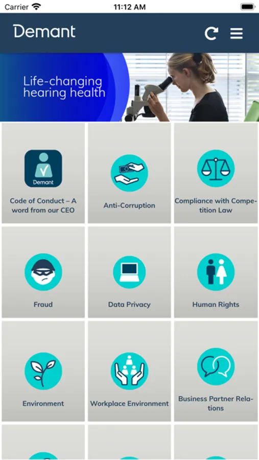 Demant’s business ethics app gives easy access to our global compliance program including Code of Conduct, whistleblower hotline as well as global policies.