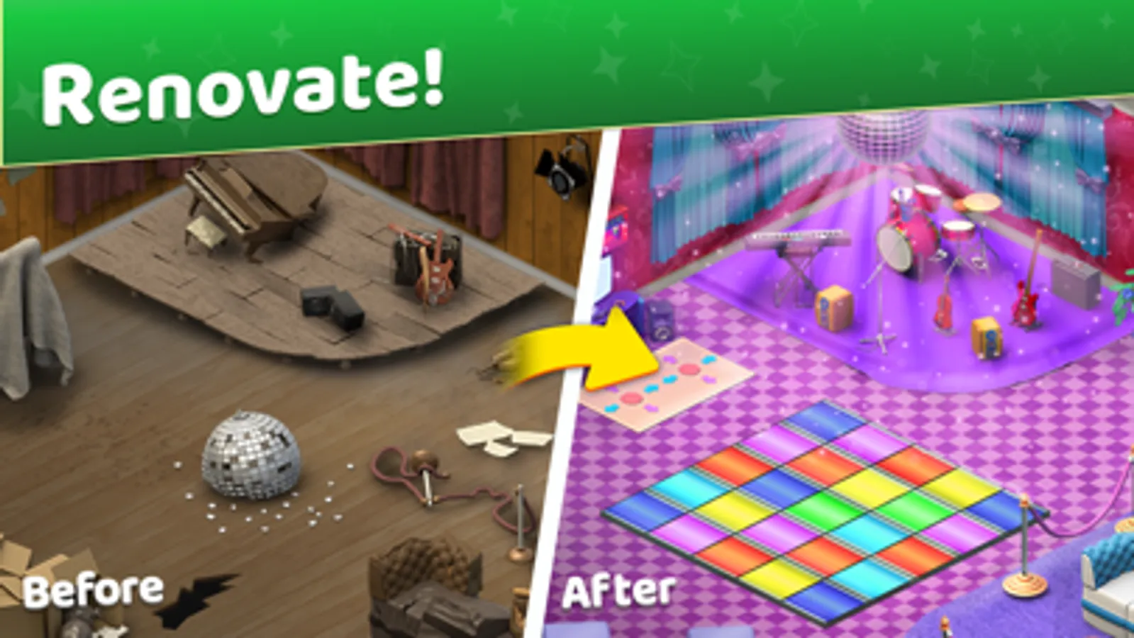 Match-3, to unravel an intriguing storyline. Complete levels to unlock new chapters in the story, new rooms to renovate, and uncover hidden mysteries left from her Grandpa!