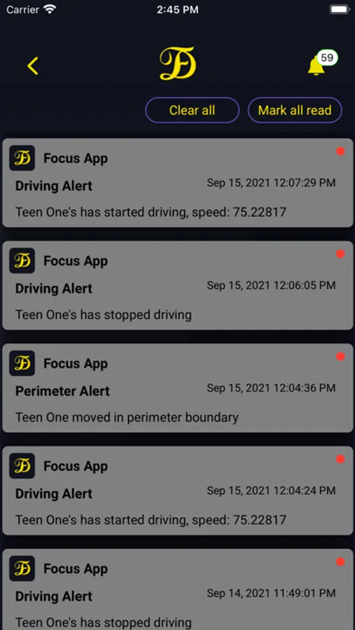 Helps parents to monitor teens driving habits to keep them safer on the roads. Focus for teen drivers is a mobile application that automatically detects when the teens phone is in motion, and tracks speed, and keeps a tab on the location. In addition, it sends a push notification when a teen goes beyond the set speed limit or crosses a certain perimeter boundary set by the parent.The driver’s phone must be turned ON and connected to the internet to track information.