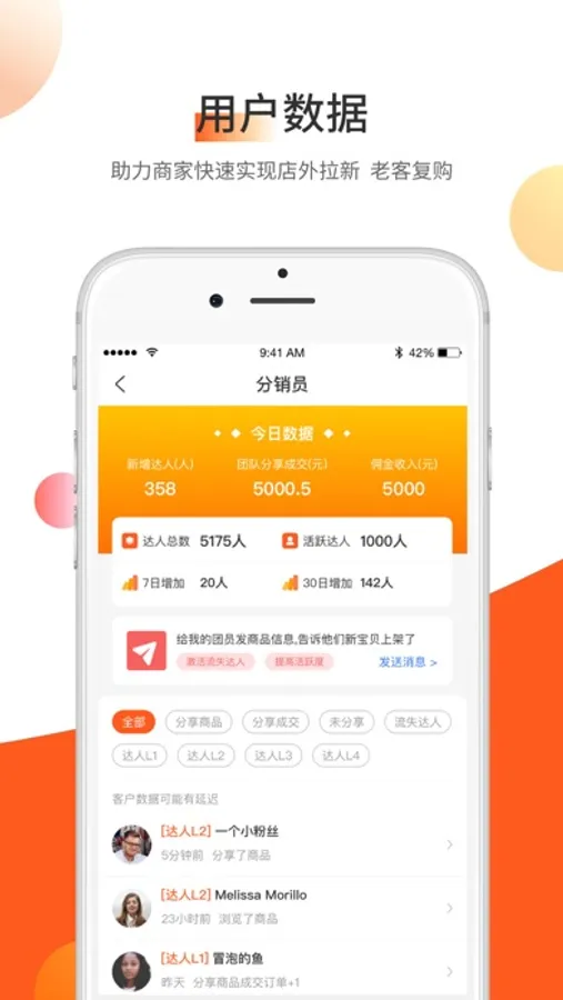 客户数据系统化管理,帮商家了解客户总数、回头客、新增与流失数;配置客户对商品、店铺、拍单的数据分析,轻松调整店铺经营策略。