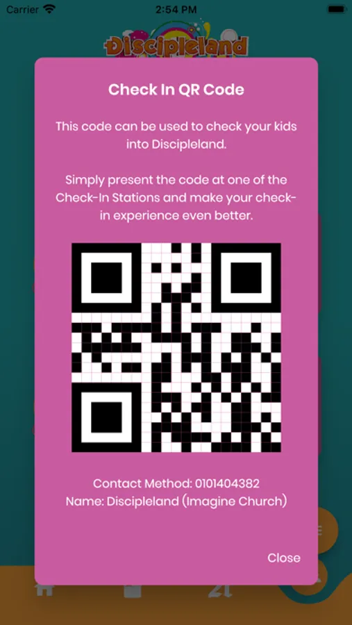 * Sign-In using your church profile to make your Discipleland check in experience a breeze! Now with contactless check-in!