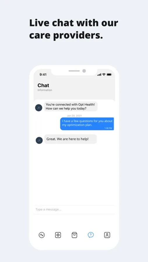 Communicate privately with your Opt Health provider through secure HIPAA-compliant messaging.