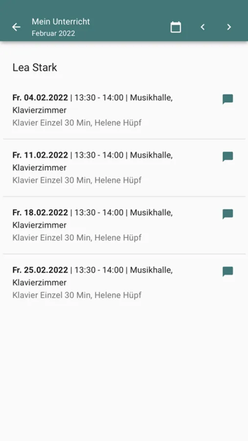 Alle Funktionen zum Austausch von Nachrichten zwischen Lehrkräften, Eltern, Schülern und der Musikschule setzen keinerlei Kontaktinformationen voraus. Die Übermittlung von Nachrichten erfolgt über eine App-interne ID. Zum Chat und Nachrichtenaustausch sind keine E-Mail-Adressen oder Handynummern erforderlich!