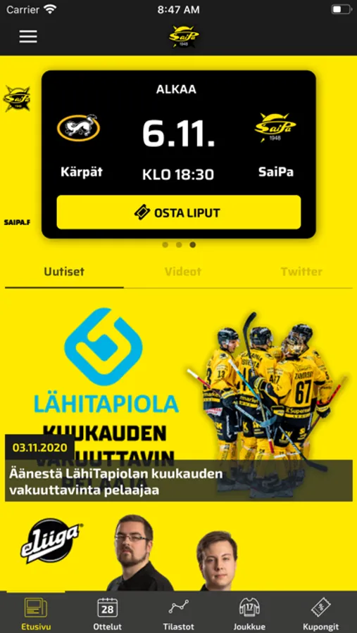 • Osta lippuja SaiPan kotiotteluihin.