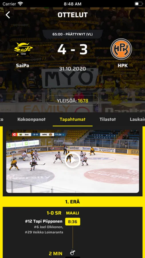 • Tilaa ilmoitukset haluamistasi SaiPan otteluista ja tapahtumista.