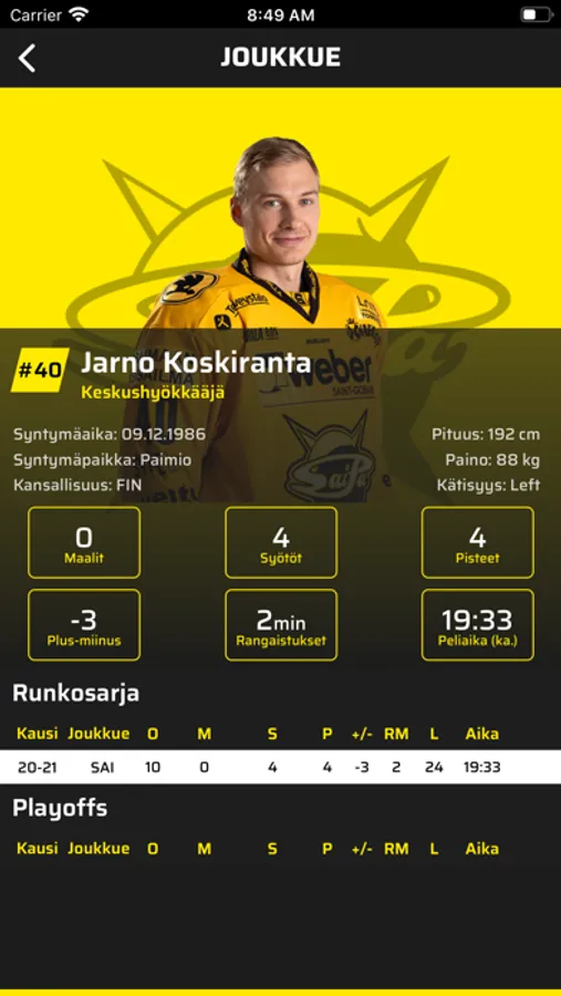 • Tutustu joukkueeseen ja pelaajiin entistä paremmin.