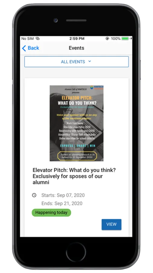 The 'BIMTECH Alumni' is an alumni app created by Almashines exclusively for the alumni members of BIMTECH. With this app the alumni can find their fellow alumni, share their moments, participate in institute and alumni events and keep themselves posted with the activities of the institute and alumni network.