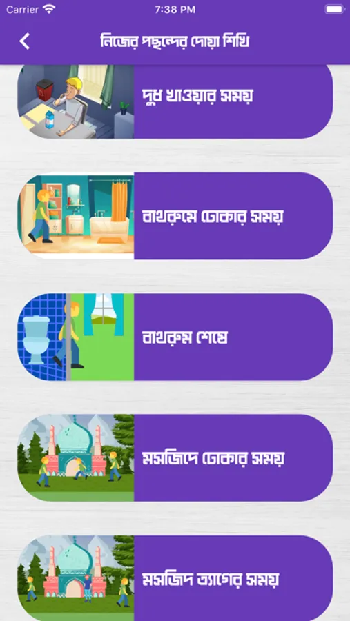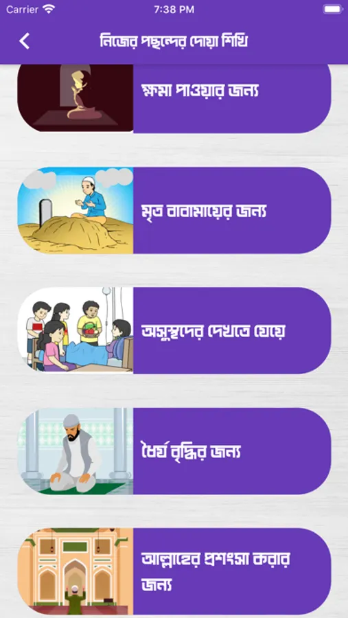 Islamic Dua book Bengali with sound especially design for kids who wants to memorize Islamic Dua for daily life activities. This is suitable for any age of the people. We have used an audio-visual system to properly getting the pronunciations. Here is also transliteration and translation retain with Bengali e letters. So you can keep it simple and side by side you can memorize everyday one by one of the Dua for your personal needs. It is a common practice for any practice in Muslims to utter some special verses from the Quran and also from Hadith. These kinds of Dua has taken from the books of purified Hadith. We have just selected a few numbers of the Dua according to the situation a person can feel in his daily activities. the selected was fantastic and usable for daily life activities for each people who are intending to maintain owns Islamic life. so the application should be your best friend on lonely maintaining life whenever you are intending to get the knowledge and wanting to memorize the best situation and verses from the Quran and Hadith. This application is developed and maintained by our company. Still now developing one by one. most of the application is distributing without any cost you can get all of these are very interesting applications. without spending a penny you can get the premium quality application from the app store. we are working hard to maintain the quality also we have to add the advertisement by the process and maintaining the cost. anybody can help the system and we can develop your desired application for your better understanding. feel free to share your ideas compliments and guide us through your personal experience using the application. We are very keen to listen to yourself and throughout the world. It is a very good idea to write in the contact form provided on our website contact page. and also let us know your interests and prescribed books and the services to develop new. Islam Arabic and the Muslim life are devoted to the almighty Allah he has created us and all the situations we have to submission towards him. by the words of Prophet Hazrat Muhammad Sallallahu Alayhi Wa Salam, we are capturing his words and maintaining the best quality. We have picked the verses kept in simple and short and best suitable for memorization. still, we are developing the best quality applications throughout the world you are enjoying this application. for all the time this is a common apology to seeking the reviews you can just enjoy the application and write as truly your experience so that the global users can have some insightful ideas about this application and your experience. We would love your speech also your review we can help each and other bye maintaining this ecosystem. On this earth and the life hereafter, we can keep our self prosperous bi sharing this application so that you can help others, people, for their Islamic livelihood. We are here all in the same boat who had reading this application and who is developing this. So we want to say alhamdulillah to The Almighty and want to say gratitude to all the people who are encouraging us to develop such kind of application. I want to say also to the review officers of this application to make the application suitable for any age of the people so they can enjoy the best of the best. we are here to listen and develop and also redesign the application throughout the pipeline and the time frame. would you please write as a lion to develop a beautiful application suitable for iOS also in the Mac OS version. Your kind contribution will be e considered as a suitable gift for the application development technological assistance. We love your kids as much as you love them. for this, we have developed and distributed so many applications that via hate now most of them become free. So you can let them have in the new gift of application. That child can have enjoyed and learn.