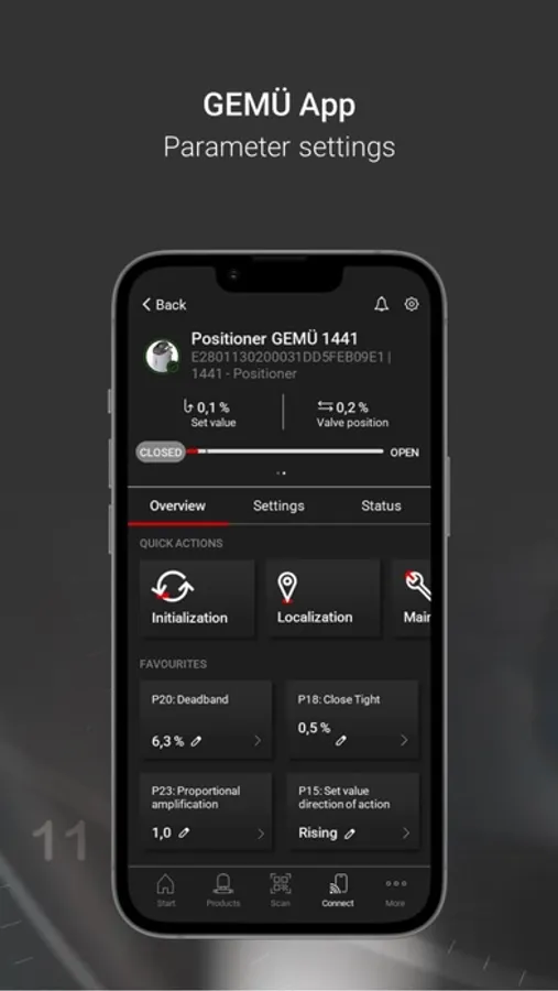 - Convenient operation and configuration of GEMÜ products with Bluetooth interface