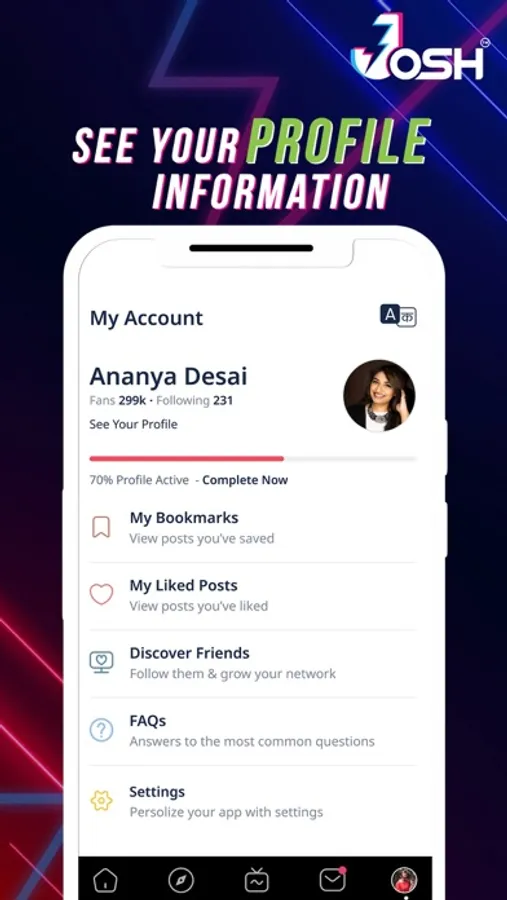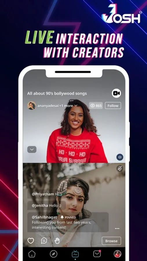 - Unleash Your Creativity: Join millions of creators and express yourself through comedy, dance, DIY, travel, finance, entertainment, Bollywood, cricket, Mojo fun and more. Let your talent shine on Josh!