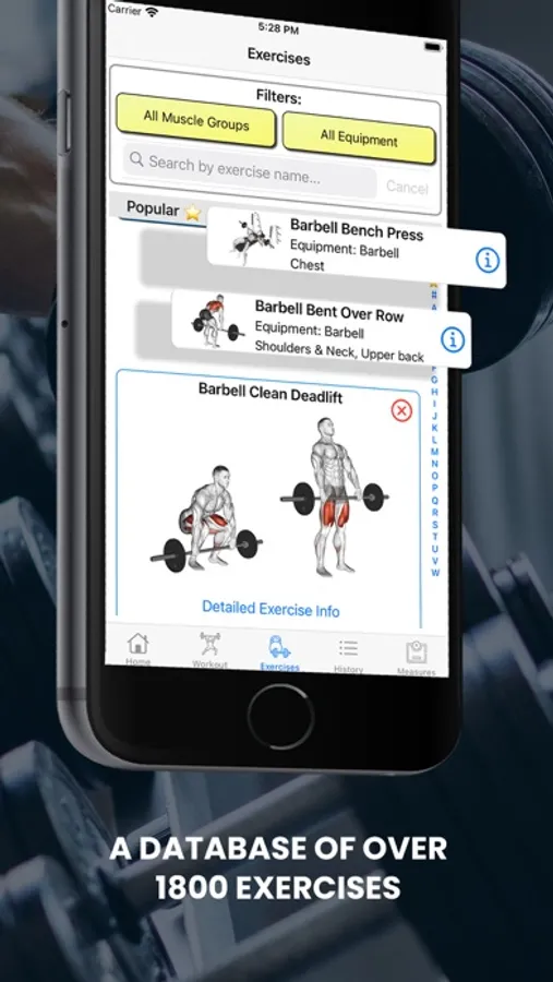 ◉ Detailed exercise information and instructions for over 150 of the most popular exercises.