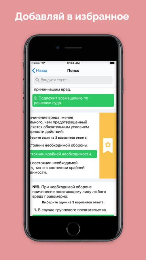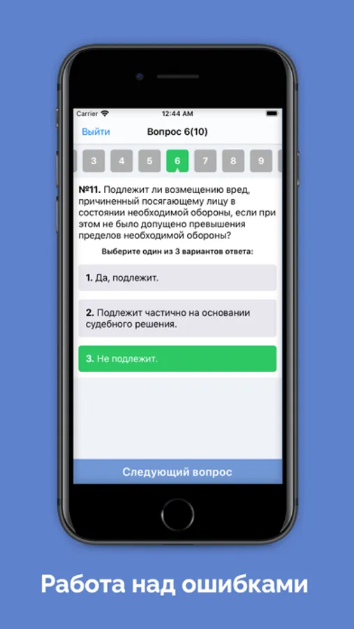 Все вопросы разделены на небольшие списки. Изучай вопросы и тренируйся. Сдавай экзамен на 10 вопросов. Легко находи нужные вопросы через поиск. Добавляй сложные вопросы в избранное. Отслеживай свой прогресс обучения.