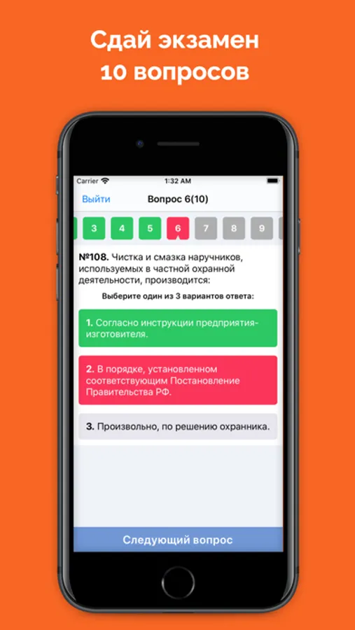 Приложение поможет подготовиться к сдаче экзамена на охранника 6 разряда.