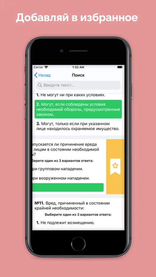 Избранное - добавляй вопросы в список, чтобы не забыть повторить.