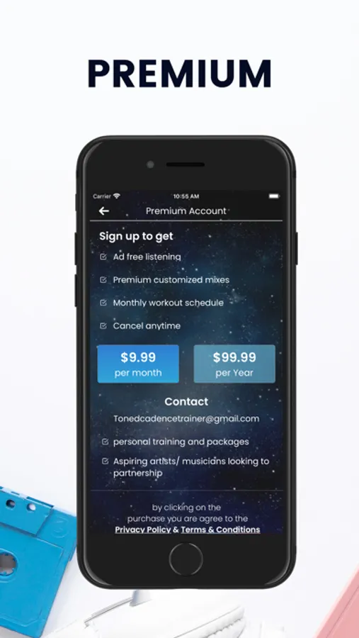 Toned Cadence Trainer offers 30 minute to 1 hour music mixes that are specially designed to match the steps per minute of your run/walk. Simply find a cadence that suits you and instantly have tempo based, uninterrupted music for your whole workout.