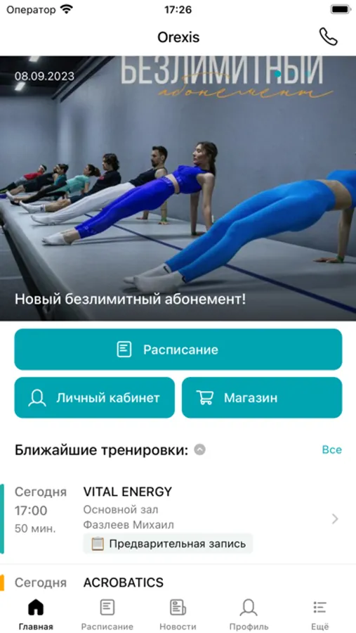 С помощью приложения вы можете следить за новостями, расписанием клуба, оперативно получать информацию об изменениях в расписании и специальных предложениях.
