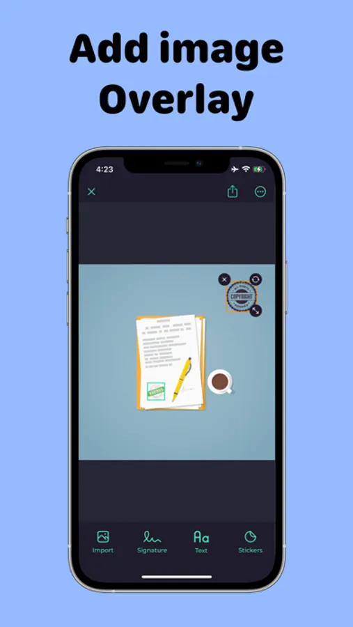 • Drag resize text, image and stickers with your fingers.