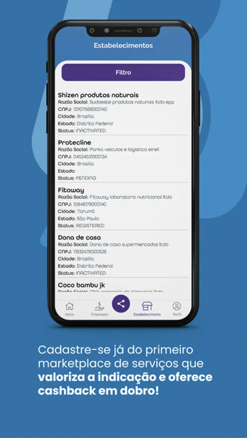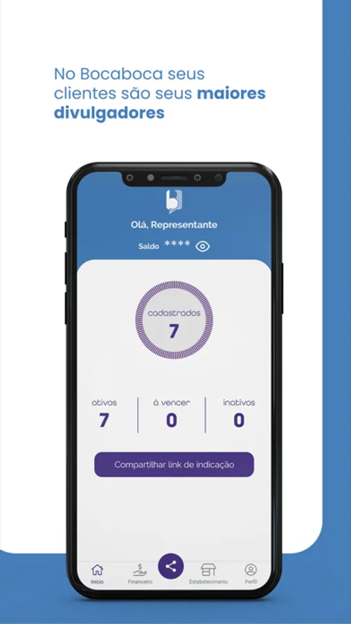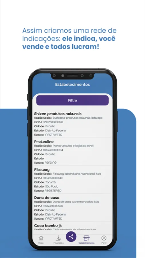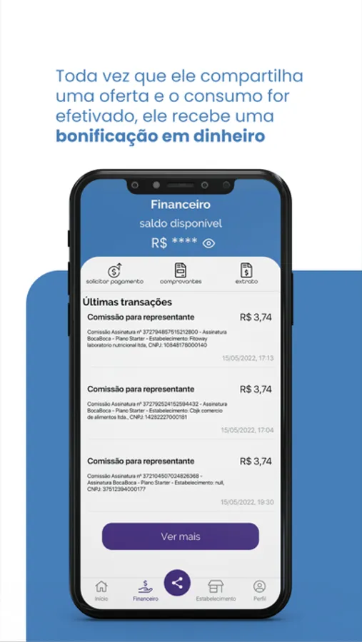 Aplicação para acompanhamento do status dos estabelecimentos já cadastrados pelo link do revendedor, além de acompanhamento do extrato financeiro e solicitação de pagamento.