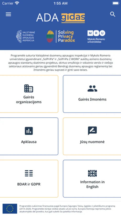 Programėlės sukūrimas finansuotas pagal Europos Sąjungos Teisių, lygybės ir pilietiškumo programą (2014–2020). Programėlės kūrėjai visiškai atsako už jos turinį. Europos Komisija neprisiima jokios atsakomybės dėl poveikio, kurį gali sukelti čia pateikta informacija.