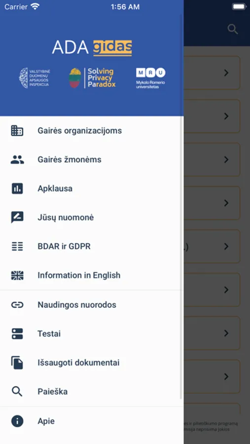 Mobiliosios aplikacijos “ADA gidas” vartotojai turi galimybę per ją gauti aktualios informacijos apie asmens duomenų apsaugą ir su asmens duomenų apsaugos priežiūros institucija – Valstybine asmens duomenų apsaugos – pasidalinti savo vertinimais ir įžvalgomis dėl rinkoje vykstančio asmens duomenų tvarkymo.