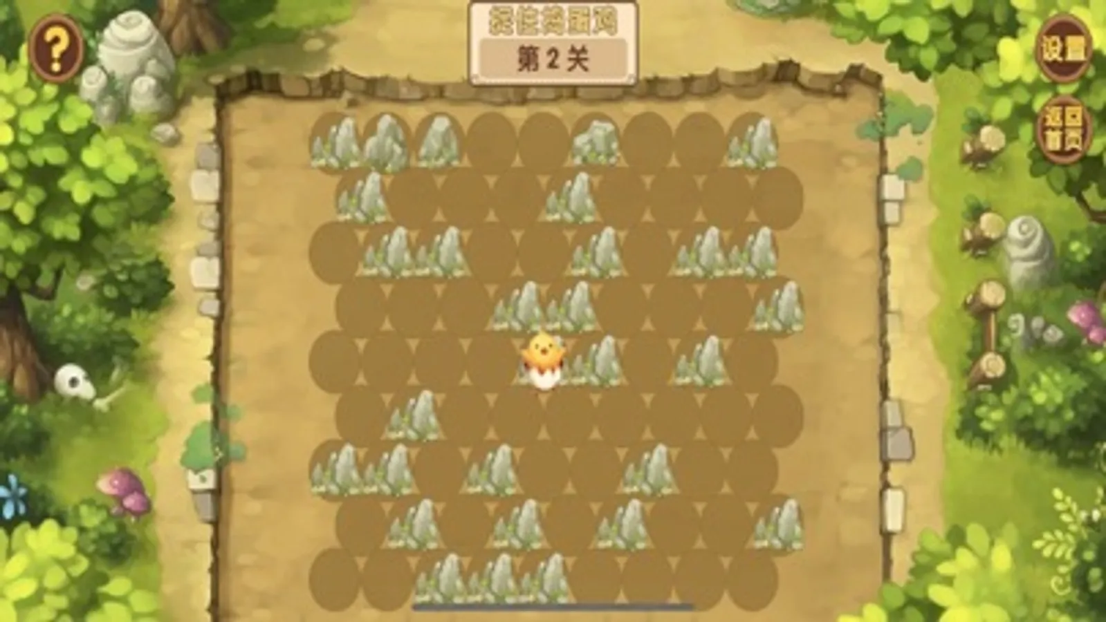 开始小鸡在中间,每次放置石头后小鸡会移动一步。当石头围住小鸡则胜利,小鸡逃到边缘则失败。