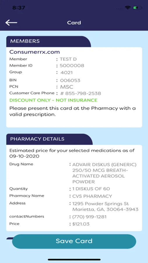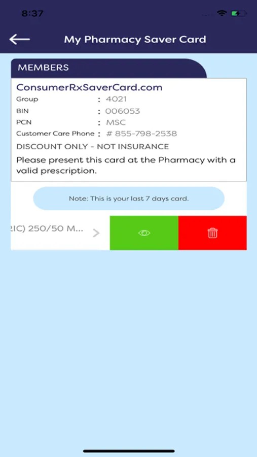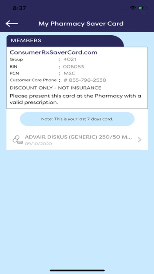 card. Upon payment, the member will be provided a digital CONSUMER RX benefit card with an RX BIN