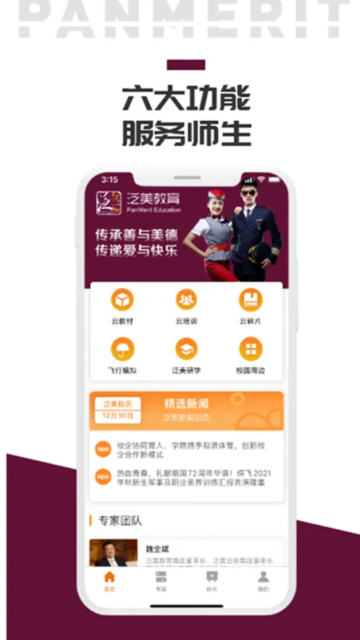 泛美教育App是一款服务于泛美教育集团旗下有四川西南航空职业学院、绵阳飞行职业学院、青岛航空科技职业学院、四川西南航空专修学院、成都航空旅游职业学校、青岛北方航空职业学校、绵阳泛美飞行职业技术学校、宿州中原航空中等专业学校、宿州航空职业学院(筹)10所航空院校的学习生活应用。