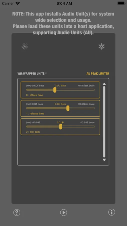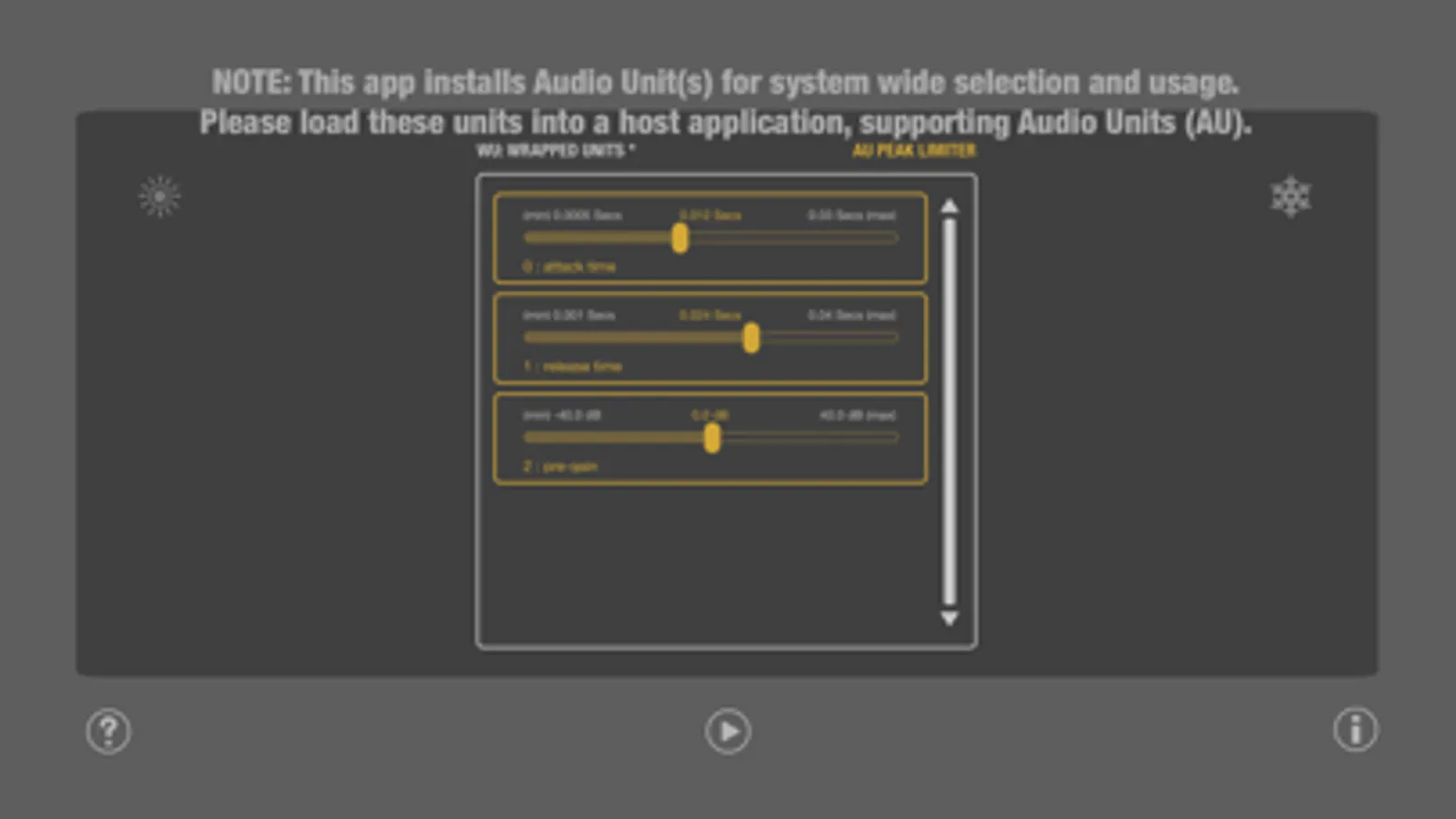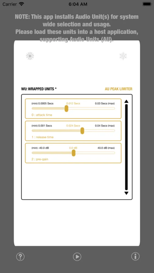 The WU (Wrapped Units) Series audio units exposes the user interface of the systems Audio Unit and makes it available to all host applications that support AUv3 audio processing plugins. Even if those hosts do not support UI-less units. Use the effect, well known from GarageBand on MacOS and iOS with any host application and ensure consistent sound with all your projects.