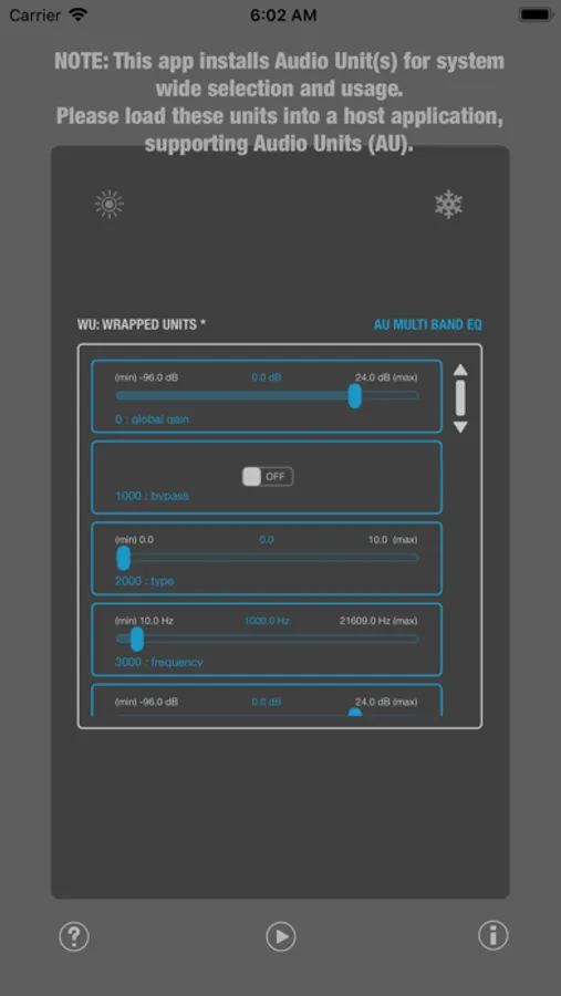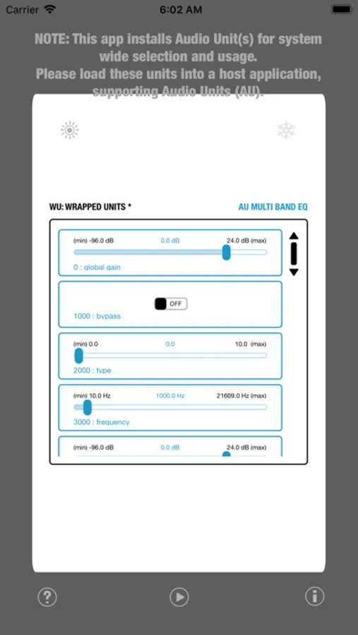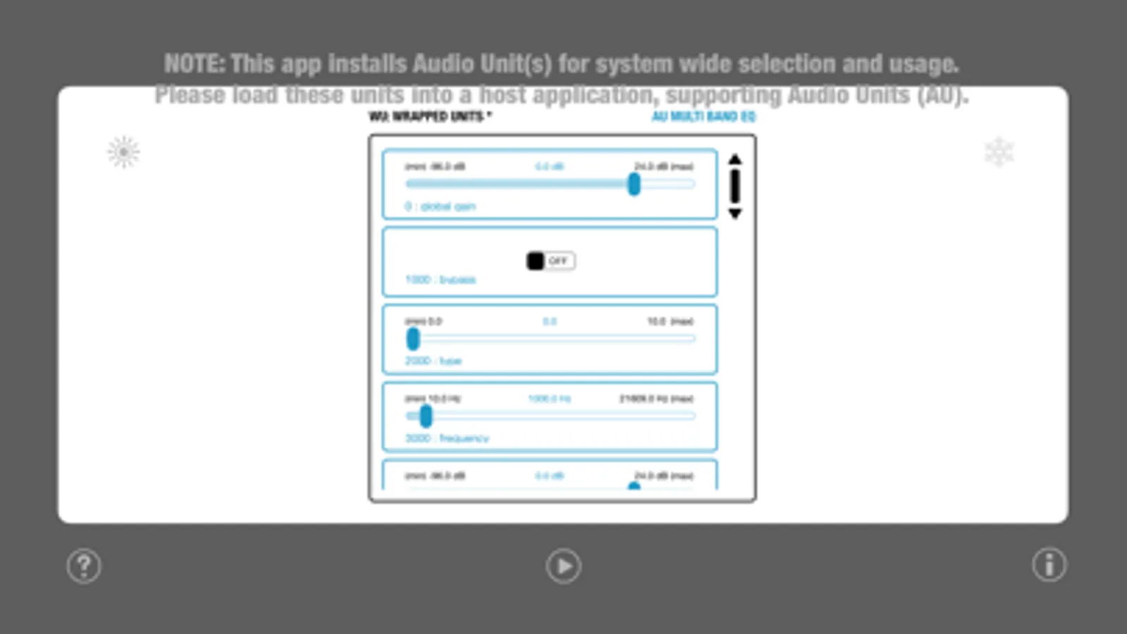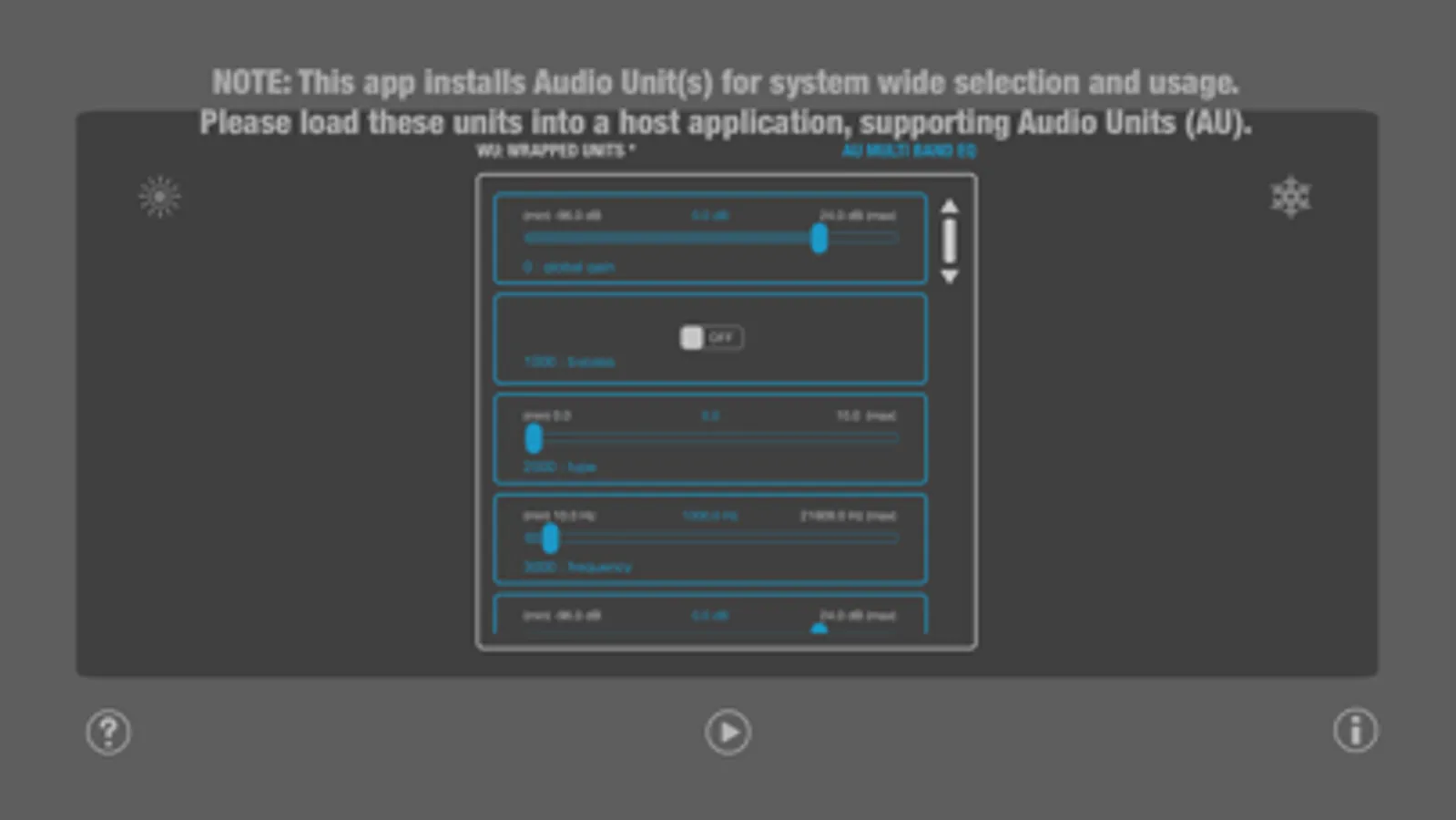 The WU (Wrapped Units) Series audio units exposes the user interface of the systems Audio Unit and makes it available to all host applications that support AUv3 audio processing plugins. Even if those hosts do not support UI-less units. Use the effect, well known from GarageBand on MacOS and iOS with any host application and ensure consistent sound with all your projects.