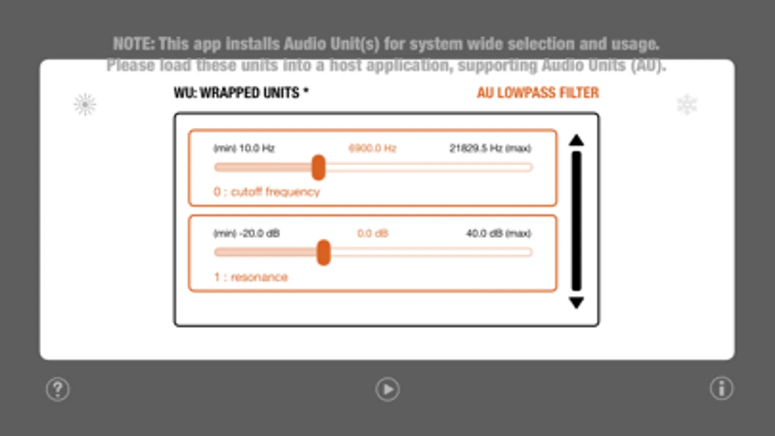 The WU (Wrapped Units) Series audio units exposes the user interface of the systems Audio Unit and makes it available to all host applications that support AUv3 audio processing plugins. Even if those hosts do not support UI-less units. Use the effect, well known from GarageBand on MacOS and iOS with any host application and ensure consistent sound with all your projects.