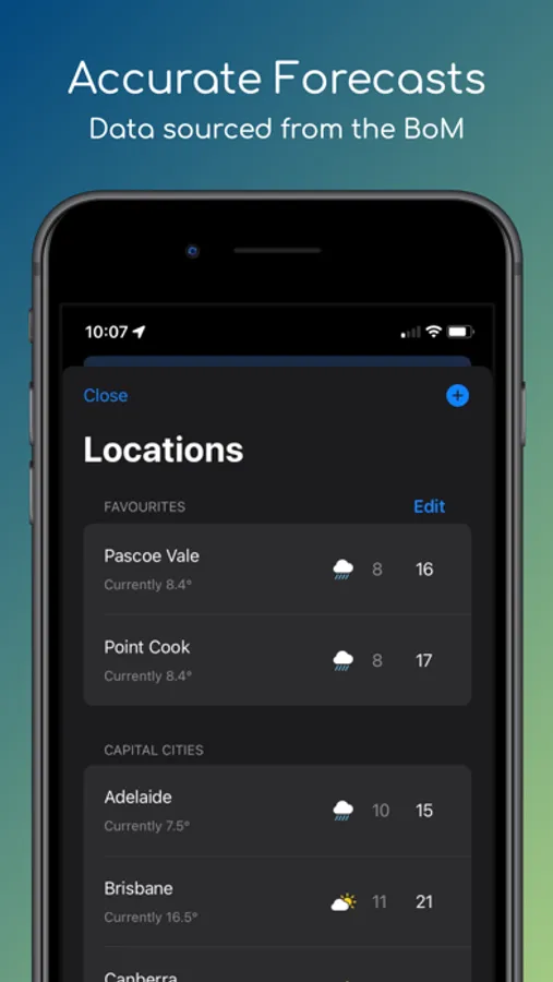 * Siri integration - ask Siri "Temperature in Melbourne in Better Weather"