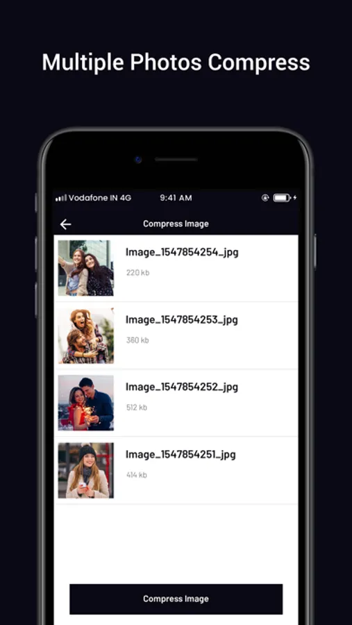 1) The app will only compress photos in JPEG format. Screenshots in PNG or other formats like GIF cannot be compressed.