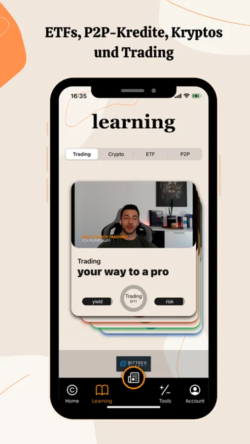 Step by step, you'll learn everything you need to know about ETFs,P2P loans,Kryptowährungen and trading. Clear explanations and practical examples make the learning process easy and enjoyable.