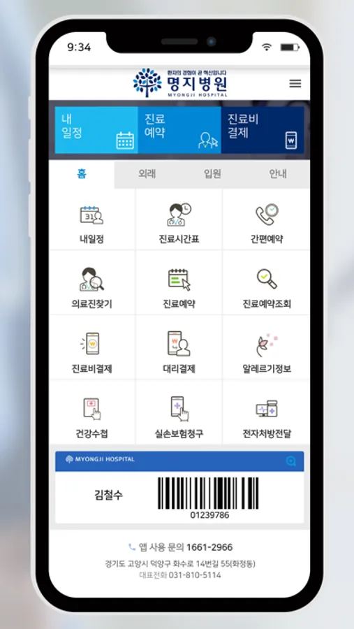 명지병원을 편리하게 이용할 수 있는 모바일 어플리케이션 입니다