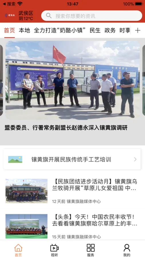 锦绣镶黄旗客户端是以镶黄旗融媒体中心以传播党的声音为根本、以提升区域用户服务为目标,充分利用自治区草原云的技术优势,建设成一个服务于镶黄旗地域人的,具有权威性、本土化和有深度的综合新闻客户端平台。 锦绣镶黄旗客户端 定位新闻+,主要分为新闻和服务两大功能服务。以新闻资讯为基础,以视频、直播等作为内容宣传的主要手段,结合本地各种民生服务打造镶黄旗本地综合的新闻客户端。