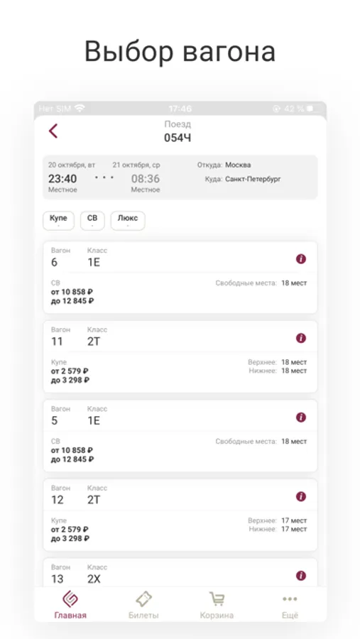 Несколько классов обслуживания для выбора подходящего комплекса услуг.