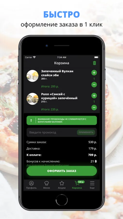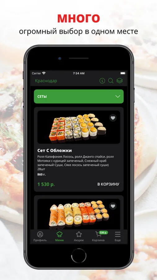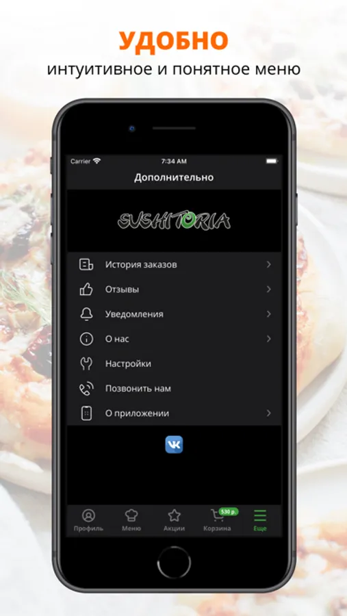 Мобильное приложение Сушитории — это понятный интерфейс, яркое меню, выбор блюд на любой вкус, удобный сервис в твоем телефоне.