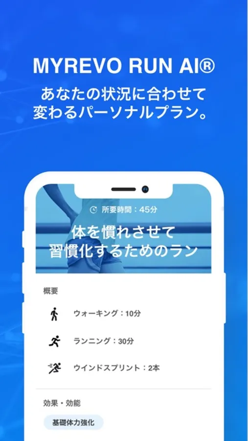 MYREVO RUNで、目標までの最短距離を示すあなただけのランニングコーチを手に入れよう。