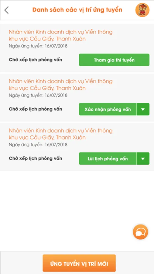 • Ứng tuyển - Thi tuyển online: Phỏng vấn Người- Máy. Ứng viên để lại Thông tin ứng tuyển/ Bài đánh giá năng lực theo hướng dẫn tại ứng dụng.