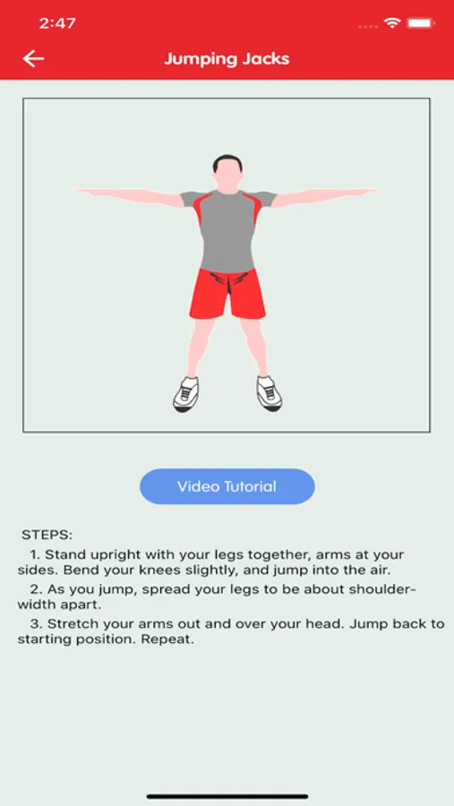 Video and description to demonstrate how to do each exercise. The App provides not only provides the animations of each exercise, but also provides step by step instructions on how to perform each exercise. The App also embeds the YouTube videos for each exercise in the App.