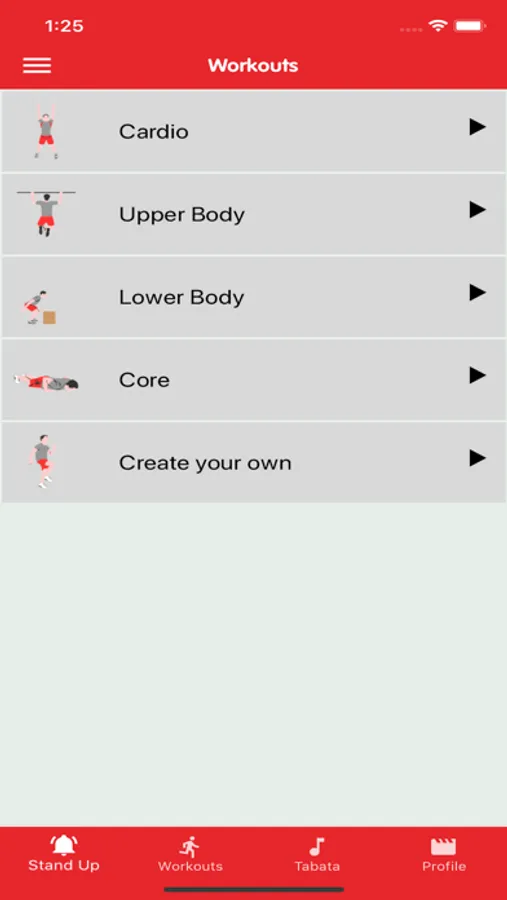Standup Workouts Timer is an exercise app that promotes physical activity and improves health by guiding you through "tabata" workouts (High Interval Intensity Training). They require no equipment and help you lose weight and belly fat by burning a lot of calories. All the workouts can be done at home or at work.