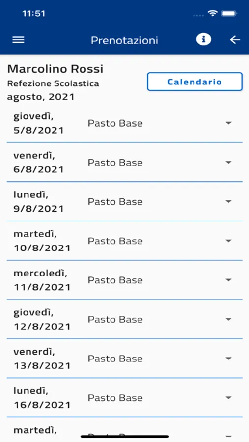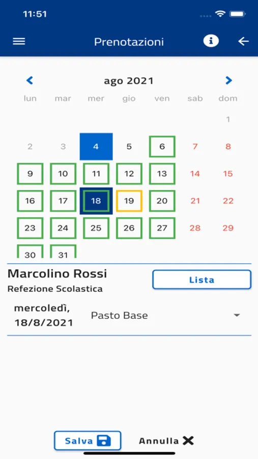 - prenotazione pasti (ove attivato presso il Comune di appartenenza, permette al genitore di gestire le presenze a mensa dei figli, secondo il calendario dei turni di refezione)